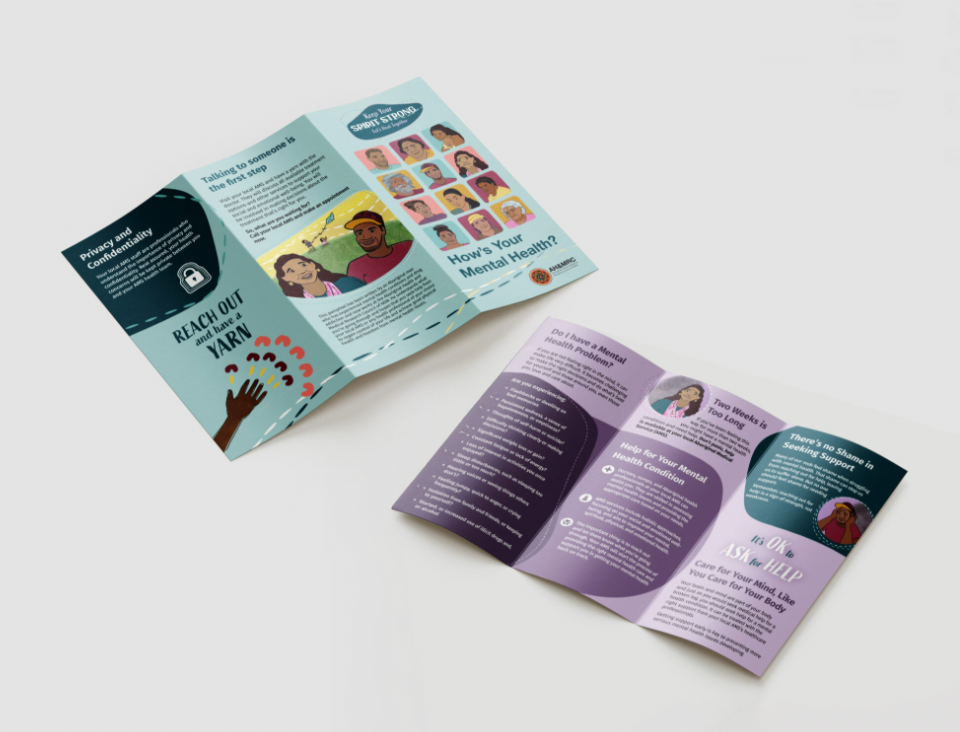 Mental Health information printed and digital collateral. Illustration, graphic design and creative direction.